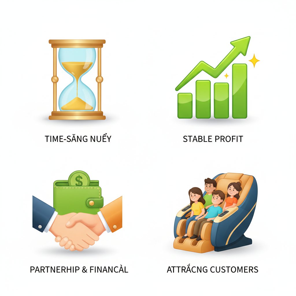 - Lợi nhuận ổn định: Nhu cầu thư giãn và chăm sóc sức khỏe ngày càng tăng cao, đảm bảo nguồn thu ổn định và bền vững.