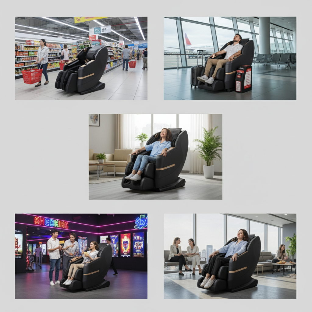 Ghế massage Sankito S-6688 có thể được lắp đặt tại nhiều địa điểm khác nhau, tùy thuộc vào mục tiêu kinh doanh của bạn: