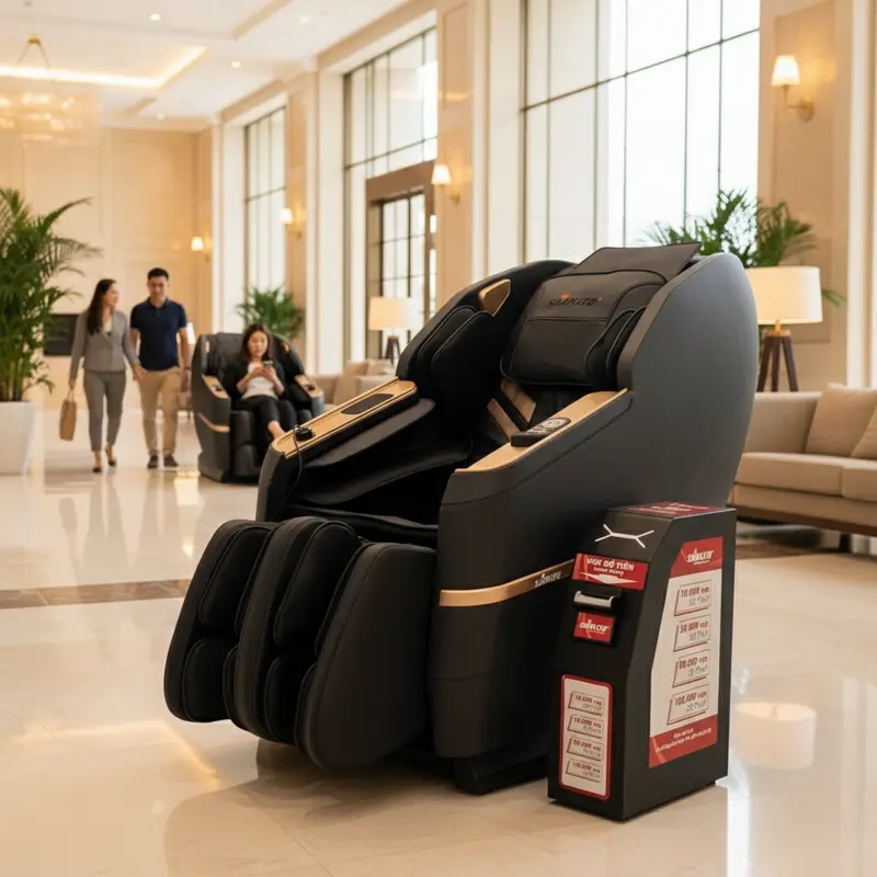 Trong cuộc sống hiện đại, nhu cầu thư giãn và chăm sóc sức khỏe ngày càng tăng cao. Ghế massage đã trở thành một thiết bị quen thuộc trong nhiều gia đình. Tuy nhiên, bạn đã bao giờ nghe đến ghế massage tính tiền tự động chưa? Đây là một giải pháp kinh doanh thông minh, đang ngày càng phổ biến tại các khu vực công cộng như trung tâm thương mại, sân bay, khu vui chơi, và thậm chí là các cửa hàng tiện lợi. Vậy, ghế massage tính tiền tự động là gì và tại sao nó lại được ưa chuộng đến vậy?